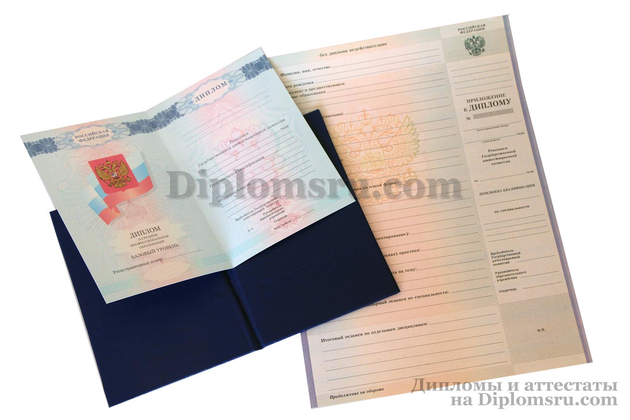 У нас Вы можете купить диплом среднего профессионального образования с окончанием техникума или колледжа в 2007, 2008, 2009, 2010 годах. Заполняется профессионалами, учебная программа и название специальности соответствуют данному периоду, заверяется печатью техникума (колледжа), подписями председателя Госкомиссии и директора ССУЗа. Диплом выглядит так, как в учебном заведении!