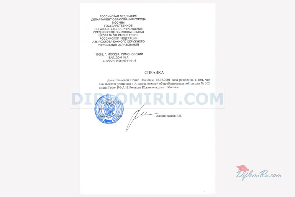 | Справки из учебных заведений | ||